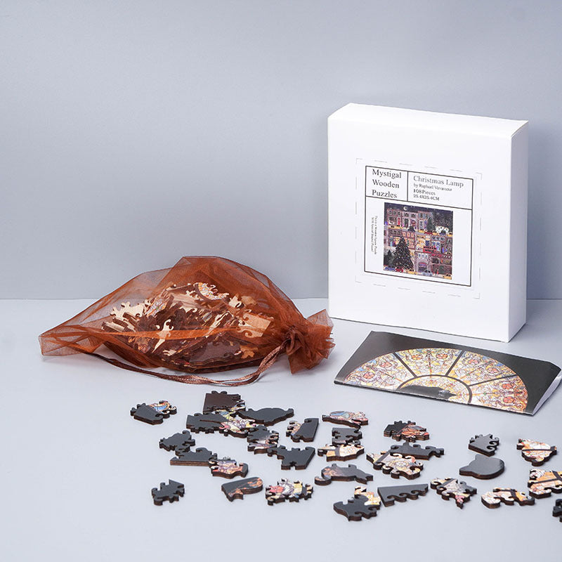 This limited-edition 108-piece puzzle transforms poplar wood into a luminous cathedral window, featuring Mystigal's iconic anime cat silhouette glowing with Tiffany-glass inspired hues. The magic touch? 22 uniquely shaped "puzzle relics" mimicking gargoyle contours that click with 85dB ASMR precision.