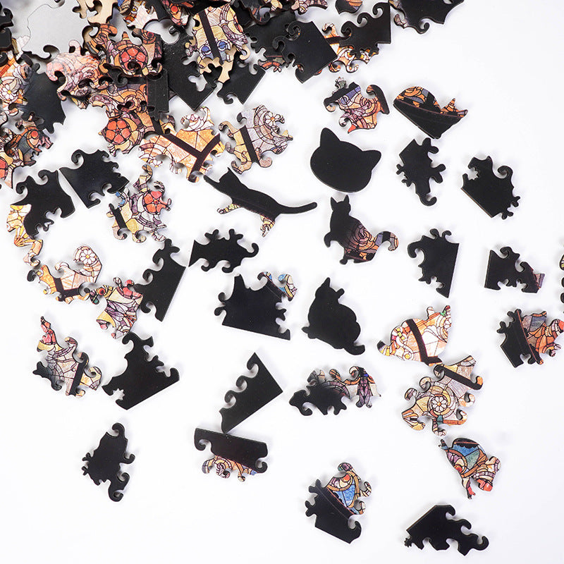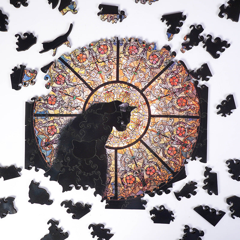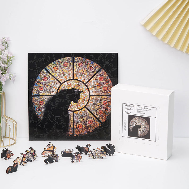 Cathedral Cat Wooden Jigsaw Puzzle - 108PC Stained Glass Anime Art for Collectors (Laser-Cut)