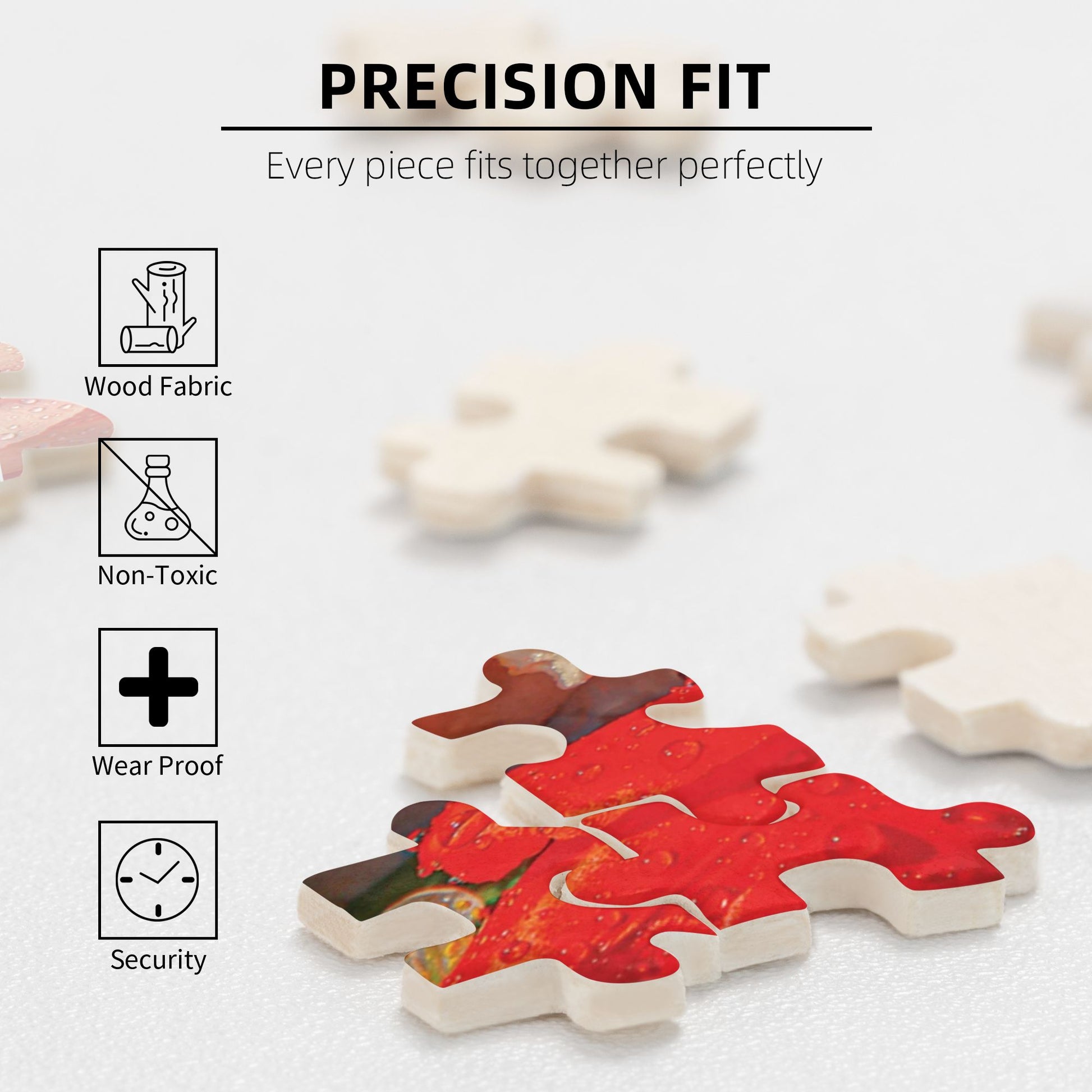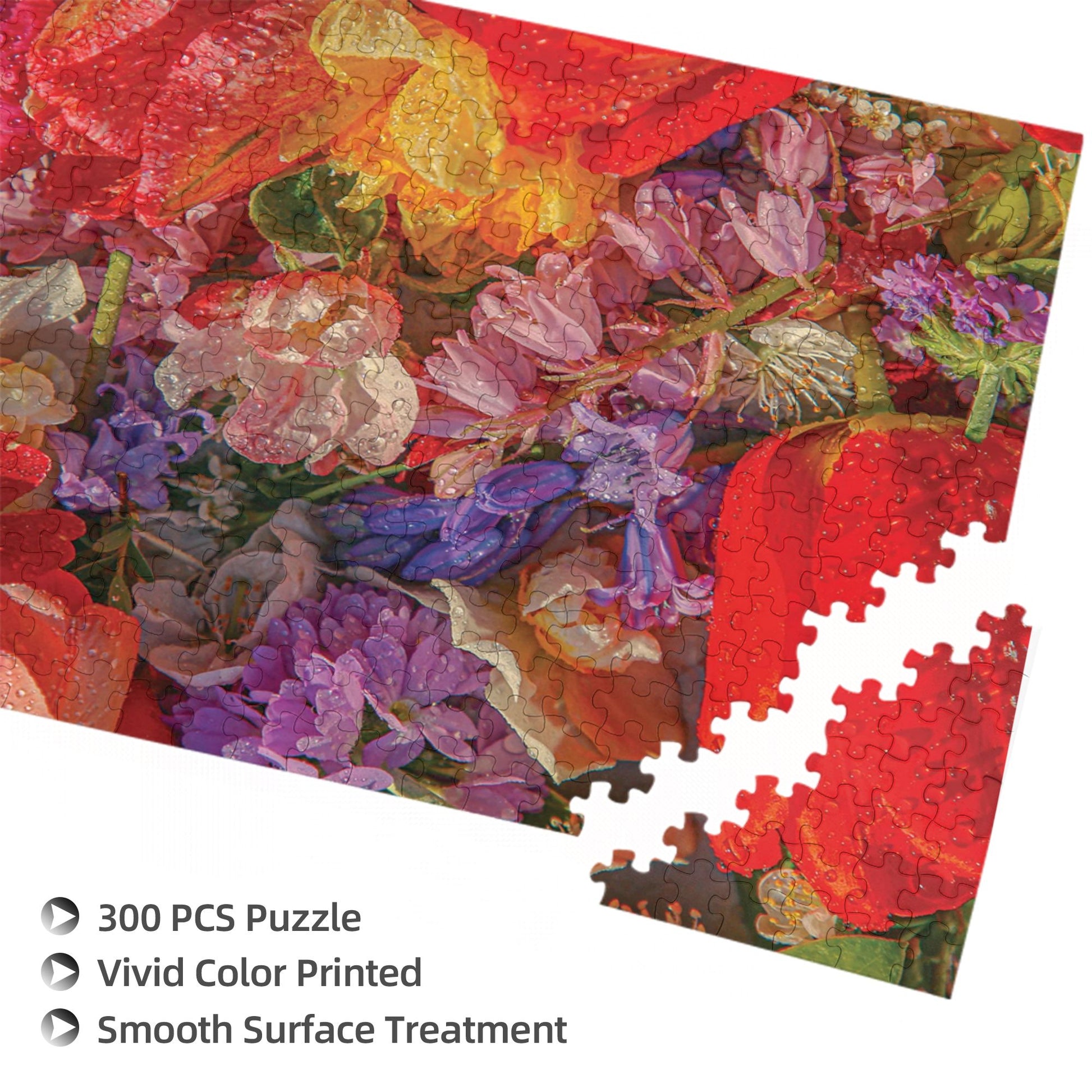 300/500/1000pc floral wooden puzzle with lifelike dewdrop petals â Framable botanical art for relaxation & family bonding. Eco-friendly poplar wood, ASMR assembly experience. Includes reference poster & storage bag.